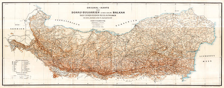 Но най-силно му повлияват пътешествията на австрийския и австро-унгарски академик, археолог, етнограф, географ и художник Феликс Каниц и неговите 30-годишни изследвания, плод на които е трудът „ Дунавска България и Балканът “. С няколко мулета, няколко заптиета и поддръжката от султана, Каниц обикаля района и прави извънредно огромно изследване, което с историите, рисунките, графиките, географските проучвания и изключителната карта и до през днешния ден е образец за фундаментален труд, а картата е употребена от съветското командване по време на Руско-турската война от 1877 – 1878 година