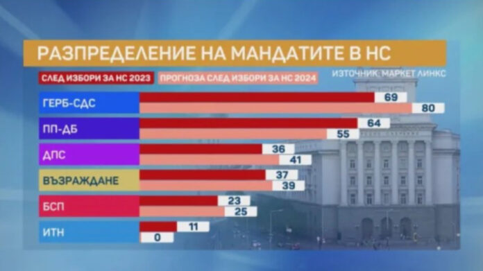 Според последните поучвания на Маркет Линкс трета политическа мощ ще е " Възраждане " или Движение за права и свободи.