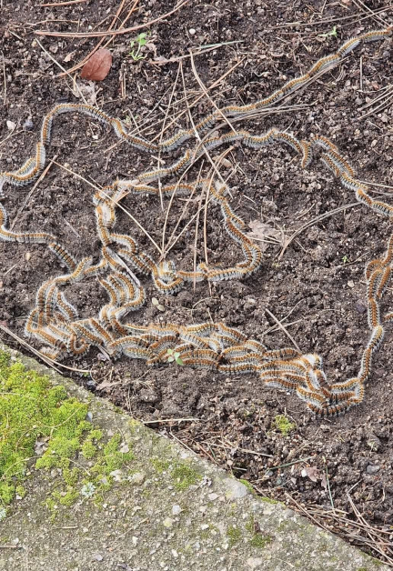 „ Те са на всички места, към този момент няма място в парка. Пазете децата и домашните любимци! Оставаме без гора, за какво никой не взема ограничения?! “ – написа възмутена Янина Димитрова и разгласява фотография, на която ясно се виждат стотици гъсеници, образуващи дълги линии по земята.