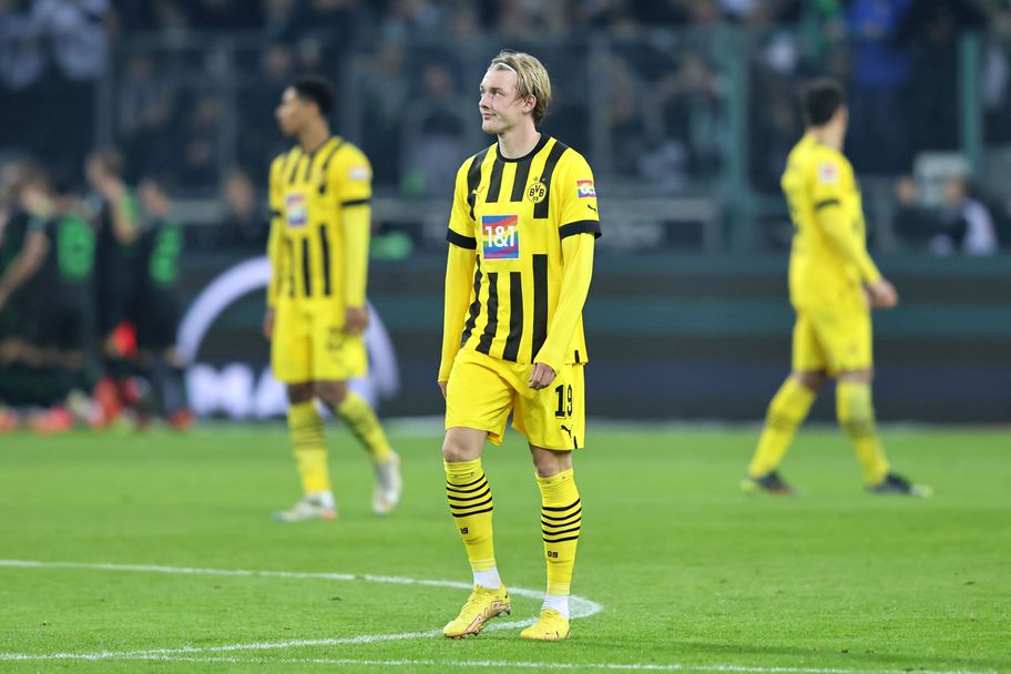 Вестфалци обаче се окопитиха и в 19-ата минута възвърнаха равенството. Джуд Белингам с прелестен прехвърлящ пас откри Юлиан Брант зад отбраната, той овладя и с шут от воле бе прецизен за 1:1.