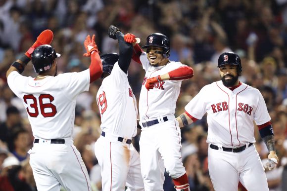 Епична роля в постигането на новия връх снощи имаше Муки Бетс. Десният аутфилдер направи историческо батиране при 2 аута и цялостни бази в 4-тия ининг против стартера на " сините сойки " Джей Ей Хап, приключило с огромен шлем при 13-ото мятане на питчера в това заставане.