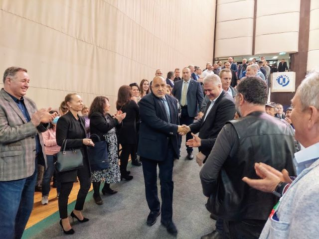 Лидерът на ГЕРБ бе посрещнат в зала " Конгресна " на Двореца на културата и спорта с бурни аплодисменти от препълнената зала.