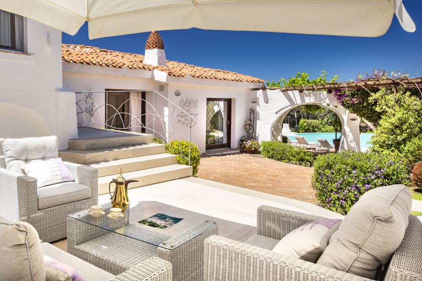 Теренът, на който е издигнат вилният комплекс, е с повърхност 23 декара, като „ лицето “ му, опряно в морския бряг със златист пясък, е дълго 350 м. Самата вила, разхвърляна на няколко равнища, има 28 спални и 35 бани, няколко салона с трапезарии, огромни тераси, от които се откриват несравними гледки към морето. Плажовете за прилагане от притежателите и техните посетители са два, толкоз са и кейовете за персонални потребности, измежду цветните градини пък се синеят три басейна с разнообразни форми и размери. Според оповестеното от медиатора на договорката - авторитетната компания за търговия с недвижими парцели „ Sotheby`s International Realty “, покупко-продажбата на парцела е най-голямата за годината (поне засега) интервенция в Италия и в Европа.