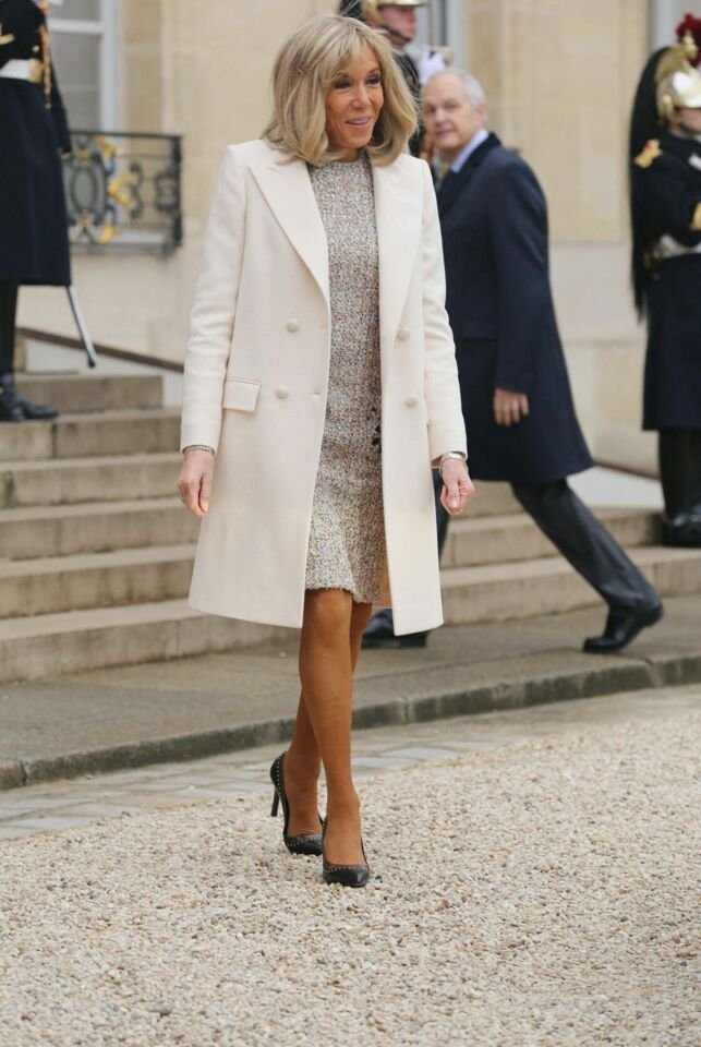 Брижит Макрон си разрешава да носи тоалети, които някои биха се срамували да облекат даже на 30-40-годишна възраст. Първата дама на Франция е известна с любовта си към естетичната хирургия и самата тя нееднократно се е подлагала на пластични интервенции, а 70-годипното й тяло познаваме чудесно поради оскъдните й тоалети.