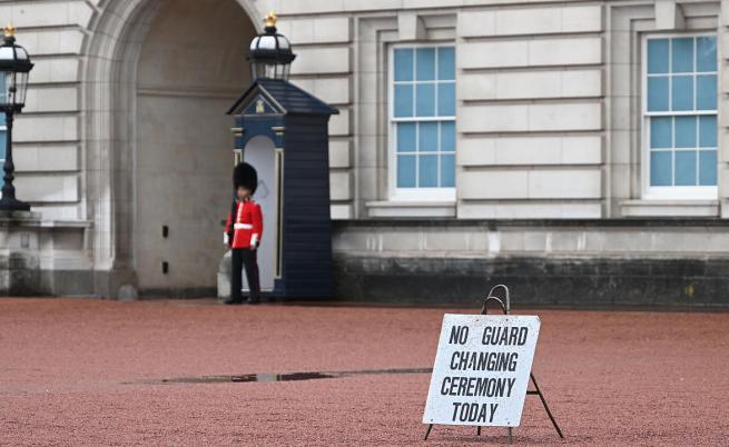 Междувременно обичайна гала по промяната на караула, която трябваше да се състои пред Бъкингамския замък на следващия ден сутринта, беше анулирана. В зоната, където се организират емблематичните тренировки е подложен знак, с цел да знаят туристите, че са анулирани.