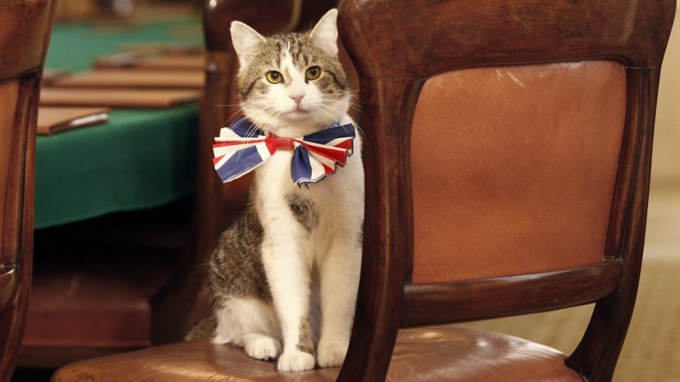 За да опровергае тези клюки, Камерън се снима с Лари, легнал в скута му. " Би Би Си " пък шеговито означи преди 10 години, че първата сериозна работа на министър-председателя е да впечатли котарака и да завоюва доверието му.