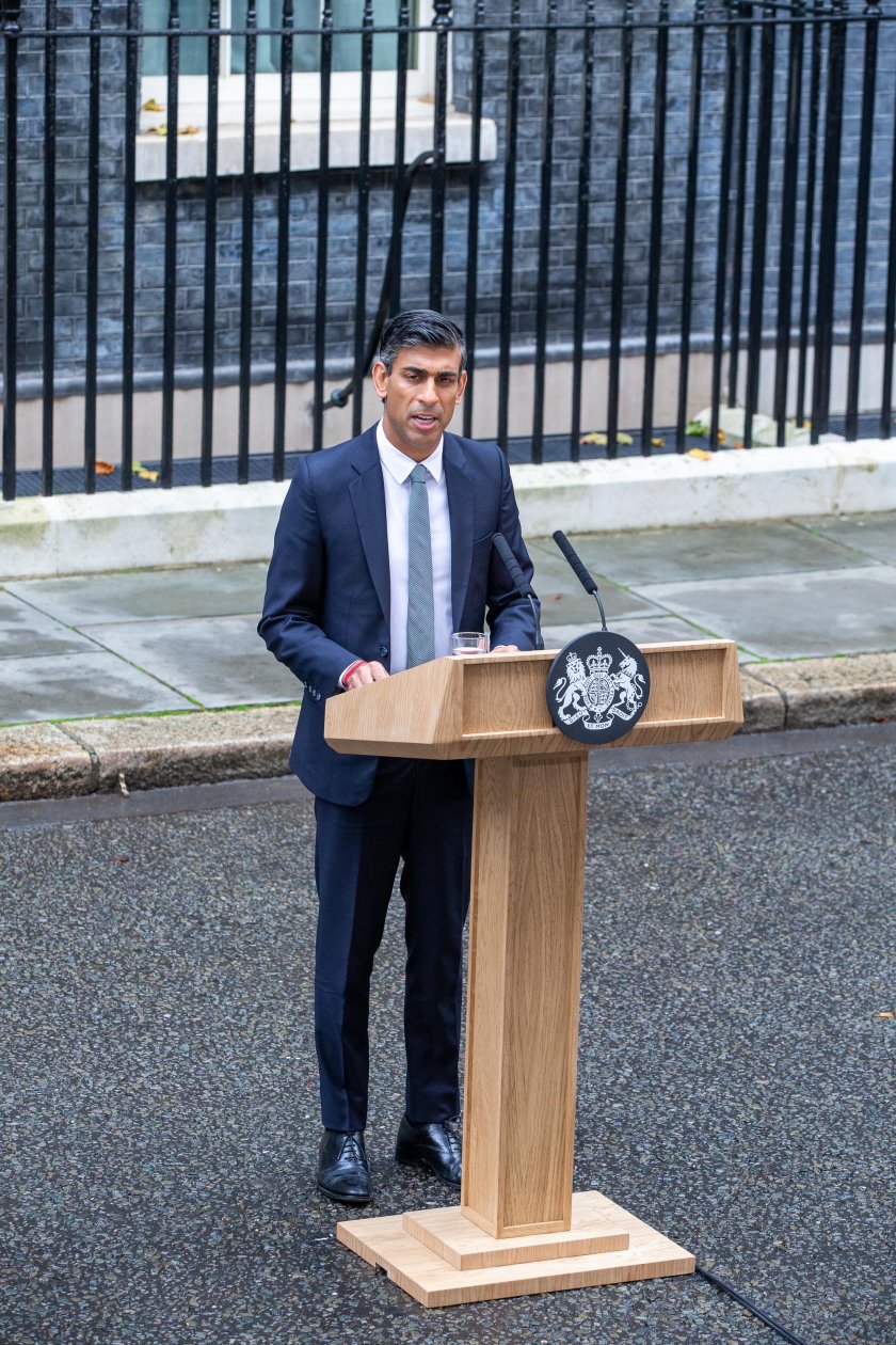 Минути преди Сунак да произнесе прочувствената си тирада пред новото си работно място, Лари тържествено обиколи тротоара и пътя пред резиденцията, както и трибуната, сложена пред " Даунинг стрийт " №10, като че ли проверявайки дружно с протокола и службите дали всичко е наред.