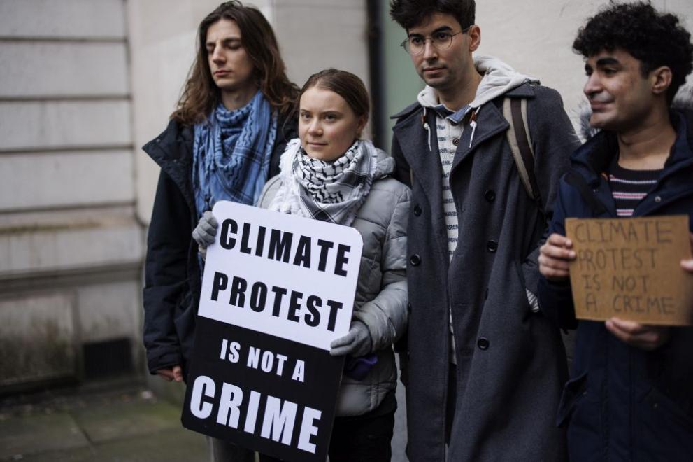 Младата активистка беше измамен под отговорност за това, че не е изпълнила заповед на лондонската полиция да не блокира достъпа до хотела , в който се организираше конференцията.