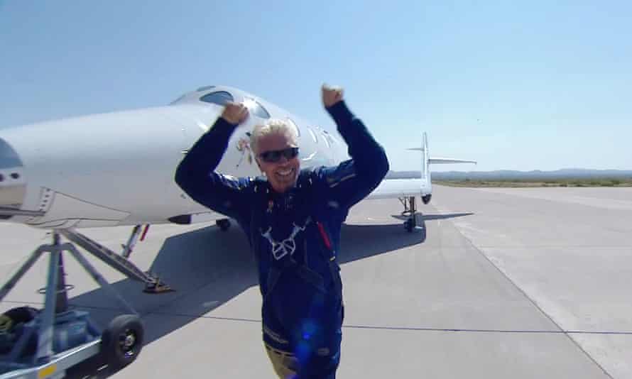 Британският милиардер Ричард Брансън отлетя до ръба на космоса с ракетен аероплан, създаден от неговата компания Virgin Galactic