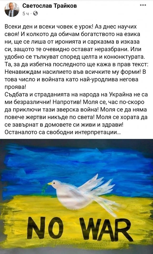 БИПОЛЯРНО: Уволненият путлерист Светослав Трайков се окичи с украинското знаме!