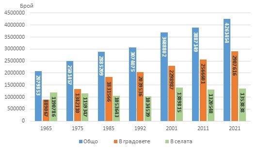 Към 7 септември 2021 година в страната са преброени 4 261 454 жилища, или с 374 305 повече по отношение на 2011 година. В градовете броят им е 2 907 616, или 68,2% от жилищния фонд, а в селата се намират 1 353 838 (31,8%) от жилищата. През интервала 2011 - 2021 е записано нарастване на жилищния фонд както в градовете (13,3%), по този начин и в селата (2,5%).