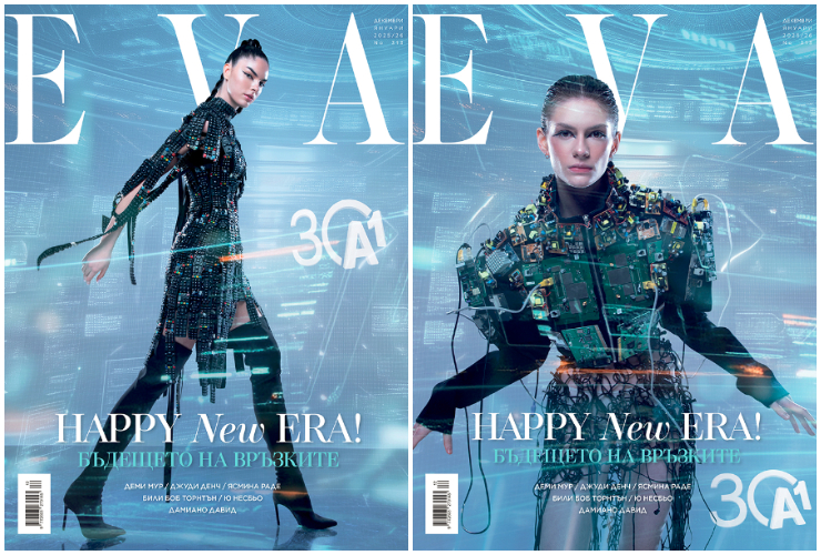 Броят, с който ще създадем мост сред остарялата и новата година, идва при вас с две доста специфични корици. На тях са едни от най-успешните ни и красиви модели - Бойка Матова и Каролина. Но същинската изненада е, че това са корици-символи.Моделите са във футуристична капсула и са облечени с облекла от концептуалната сбирка на Николай Божилов, основана в чест на 30-та годишнина на А1. С посланията си обаче тази сбирка надвишава съответния мотив. Затова и желаеме корицата да ви накара да се попитате към какво бъдеще отива нашият свят, на който аналоговата версия очевидно не му доближи, по тази причина и сътвори цифровия си облик, а след това предложения и изкуствения разсъдък.Вярваме, че посланието й ще бъде разчетено. А то е да не се тормозим от технологиите, които безспорно трансформират живота ни, и да се научим да живеем в естетика с тях, без да забравяме, че сме хора и че общуването ни като хора постоянно ще си остане скъпо.
