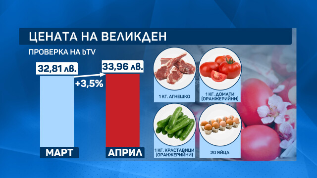 bTV ревизира какъв брой ще ни коства трапезата за Великден. Екипът ни съпоставям цените на главните храни за празника този четвъртък и преди месец.