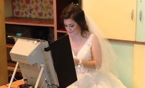 Освен да гласоподават на парламентарните избори, двамата подписаха и цивилен брак. Десислава и Теодор пуснаха гласа си в сватбени одежди.