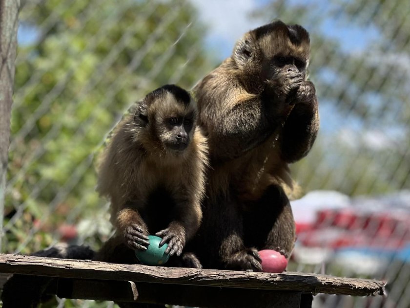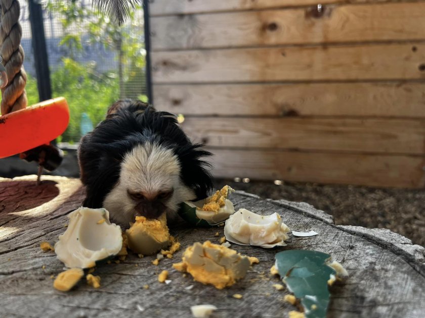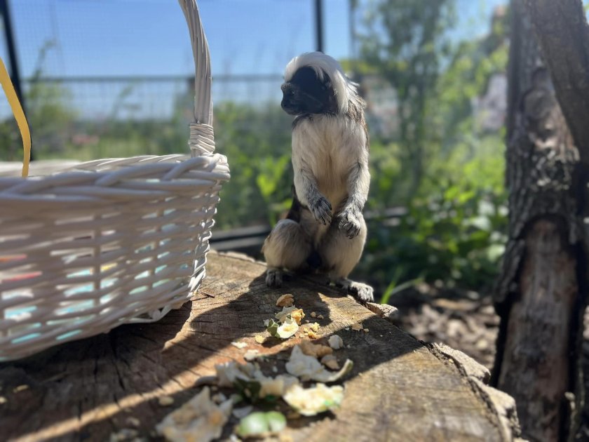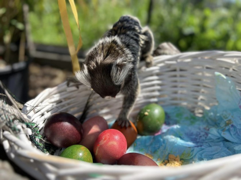 " Златоглавите лъвски тамарини са едни от най-любопитните и общителни примати. С огромно предпочитание и интерес те се любуваха на своите шарени великденски яйца ", пишат на Facebook страницата си от зоопарка.