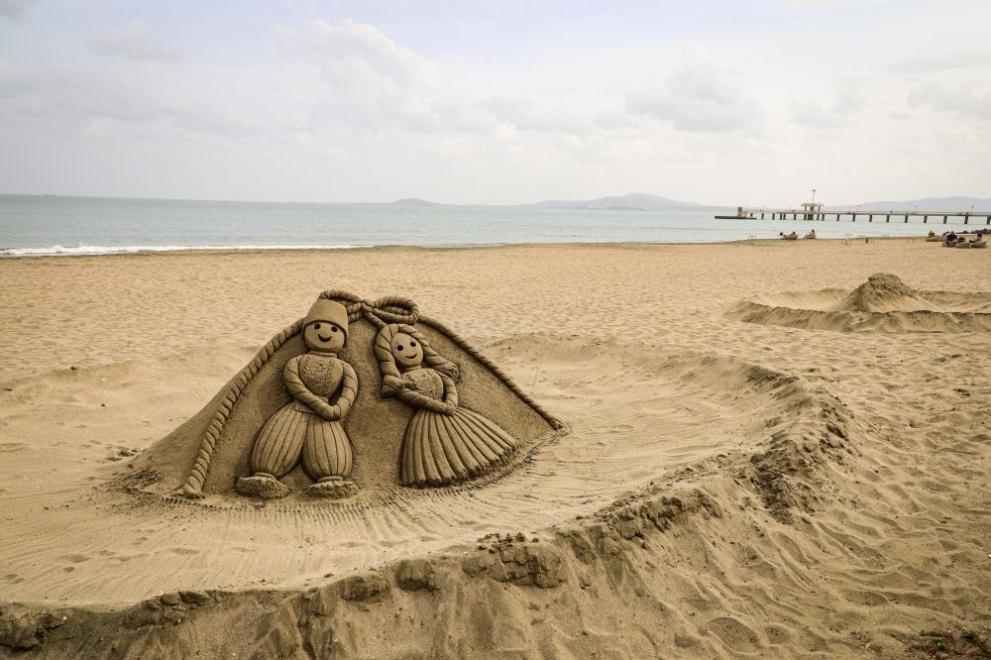 Българска телеграфна агенция На централния плаж, във връзка празника Баба Марта, се появи пясъчна фигура на Пижо и Пенда.