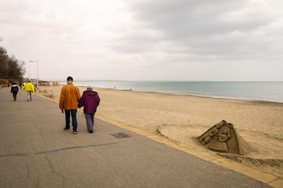 Бургазлии се радват на топлите дни в края на февруари на брега на морето.