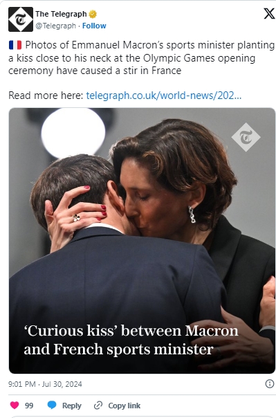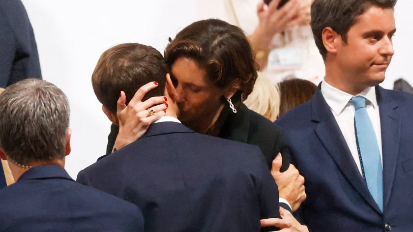 Безсрамните целувки сред двамата накараха дори френският министър-председател Габриел Атал да отклони погледа си от тях.