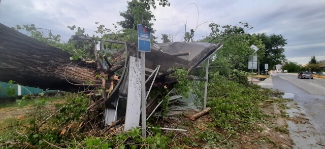 Инцидентът е станал в регион „ Южен “. Дебелият повече от метър дънер безусловно е смазал металната структура на спирката, която обслужва линиите номер 7 и 195.
