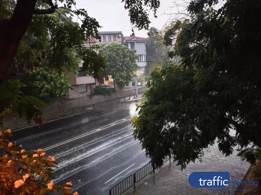 Лошото време е сила в Пловдив! Изсипа се порой със светкавици ВИДЕО