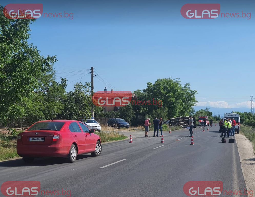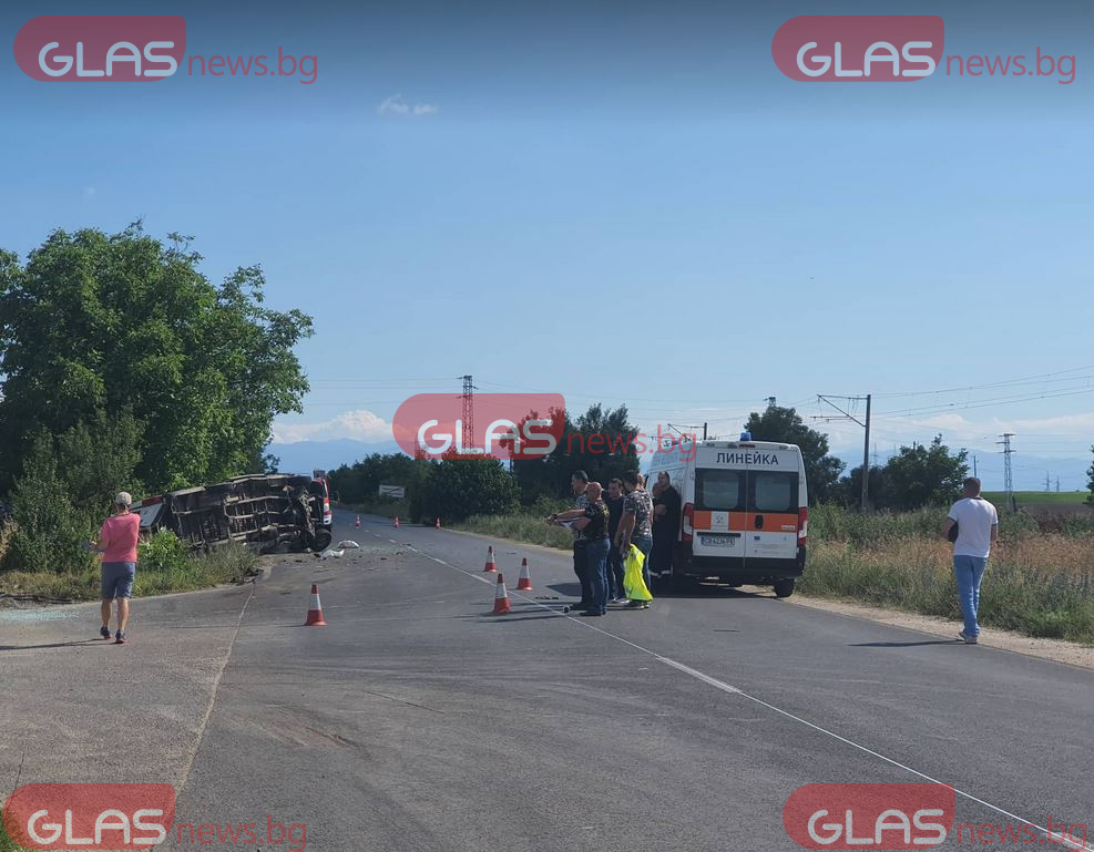 Бус е преобърнат след тежката злополука на край Чернозем. При случая починаха двама души, а други двама са ранени. Тече огледа на местопроизшествието и изясняването на аргументите.