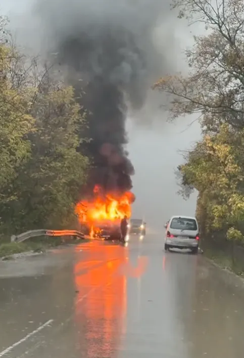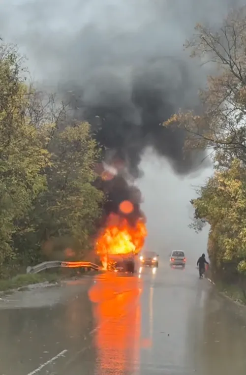 Превозното средство е обхванато в пламъци.
