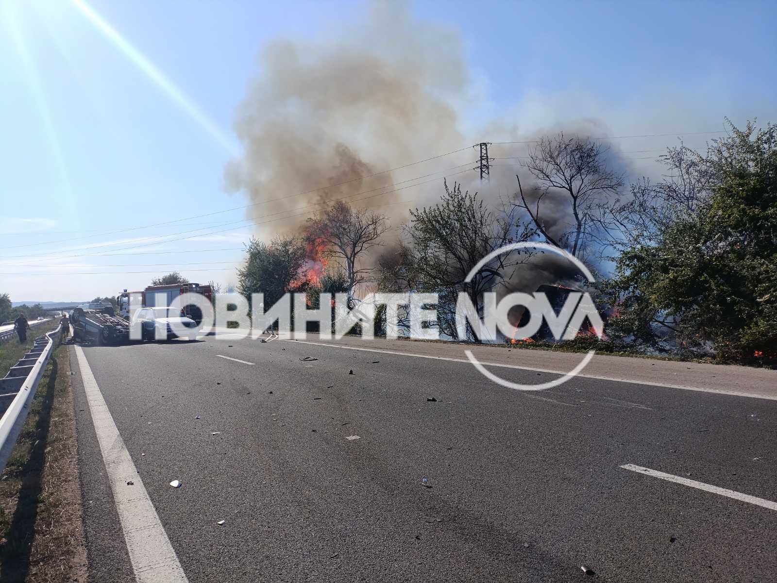 Бус се възпламени при злополука на „ Хемус “, има ранени.