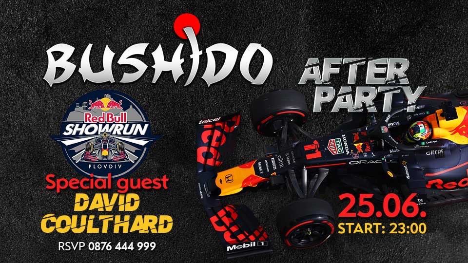 Bushido club в комплекс " 7 POINTS " е мястото, което звездата на Formula 1, Дейвид Култард и екипа на RedBull са избрали за празненството след мегашоуто на Гребната база, което ще се организира на 25 юни. Както TrafficNews към този момент заяви, там звездата на Formula 1 ще покаже същинската мощност на болид RB 7.