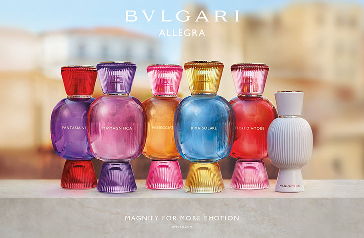 Bvlgari е италианската фешън къща, на чиято дръзка природа разчитаме за ентусиазъм и революционни разчупвания на шаблоните и разпоредбите в дизайна на бижутата. Знаците на италианския прочувствен метод на живот са вплетени във всяка клетка на марката. Свидетели сме и на сходно смело излизане от границите и в парфюмите на Bvlgari. Революцията Allegra Представяли ли сте си да имате собствен характерен мирис, който напълно да улавя и предава личната ви самостоятелна сила? С присъщия си революционен метод Bvlgari прави това, което до момента не е правено в парфюмната промишленост: дава опция на всеки да сътвори личен и персонален благоуханен автограф. Bvlgari показва извънредната сбирка Allegra, която се състои от седем парфюмни води и седем подсилващи есенции и дава късмет да създадем неповторим персонален мирис. Есенциите носят името Magnifying и всяка от тях се съчетава безупречно с която и да е от седемте парфюмни води, като ги усилва и променя вибрациите им. Избираме си мирис, укрепваме го с есенция и получаваме повече от него. Всичко зависи от творчеството ни.
