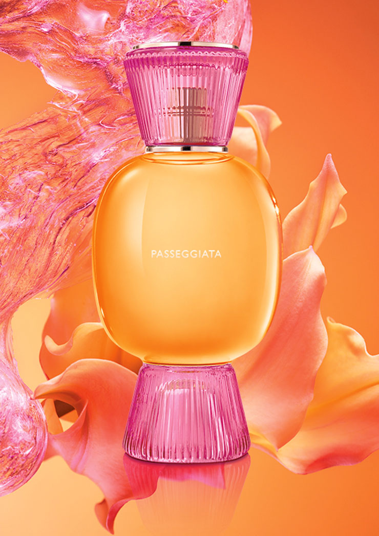 Флаконите на есенциите Magnifying имат същия скулптурен контур като флаконите за парфюмна вода, само че са в напълно бял цвят, издаващ тяхната драгоценност. Уханието Passeggiata въплъщава разгорещен колорит на елегантността – цветна комбинация от безапелационен розов цвят с оранжев нюанс, която припомня за залез и за вечер, изпълнена с случки. Ароматният воин в композицията е цветето иланг-иланг.Колекцията Bvlgari Allegra е основана със същото внимание към детайла, което виждаме при направата на изящните бижута на марката. 96% от флакона на Bvlgari Allegra Eau De Parfum e направен от стъкло с лесна рециклируемост. В 80% от опаковките са включени вторични материали, в това число от сицилиански лимони като съществена суровина за производството на висококачествени хартии.