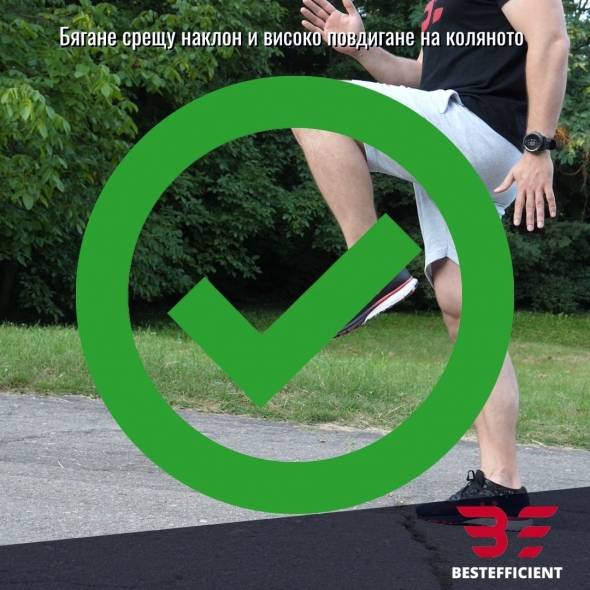 Това е една от най-често срещаните и нежелани неточности при бягането. Тя ни стопира да развием добре скоростта си и да разгърнем същинския капацитет на бягането си. Наклонът просто ще ви накара да вдигнете коленете си по-високо, до момента в който бягате.