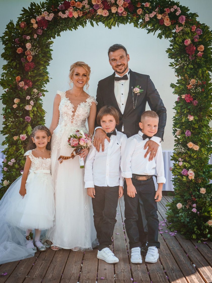 Ивайло и Станислава на сватбата си с трите си деца. Засега двойката няма общи деца