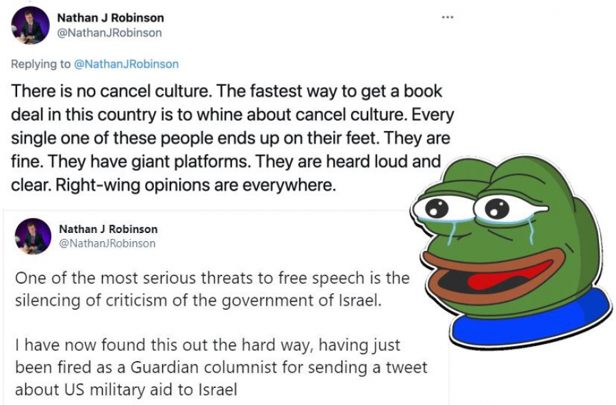 " Cancel " културата не е нещо, което ние си измисляме. Един от най-ярките образци за това е някогашният публицист на " The Guardian " - Нейтън Робинсън. Един от най-яростните либерали на демократичното издание, човек, който бранеше новите демократични полезности, отричайки тъкмо тази cancel просвета в редица свои трудове и туитове.