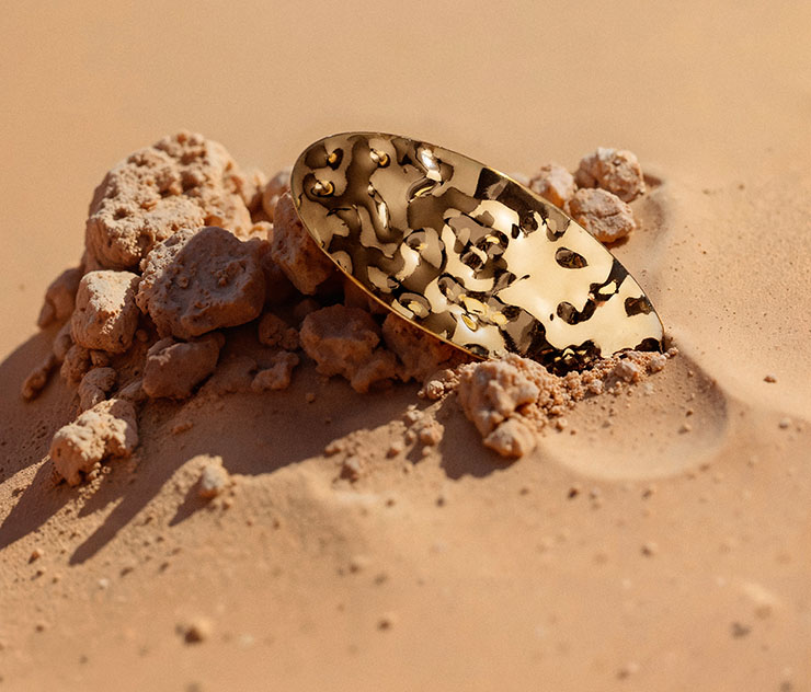 Аксесоар, който добавя цялостната визия от серията, тази шнола със златно покритие и изтънчен дизайн е съвършена за разнородни прически – от повърхностно вдигната коса до грациозен кок. Добавя нотка футуристична изисканост към всяка визия. Колекцията Desert Dune - хубостта на природата в комбиниране с съвременна визия