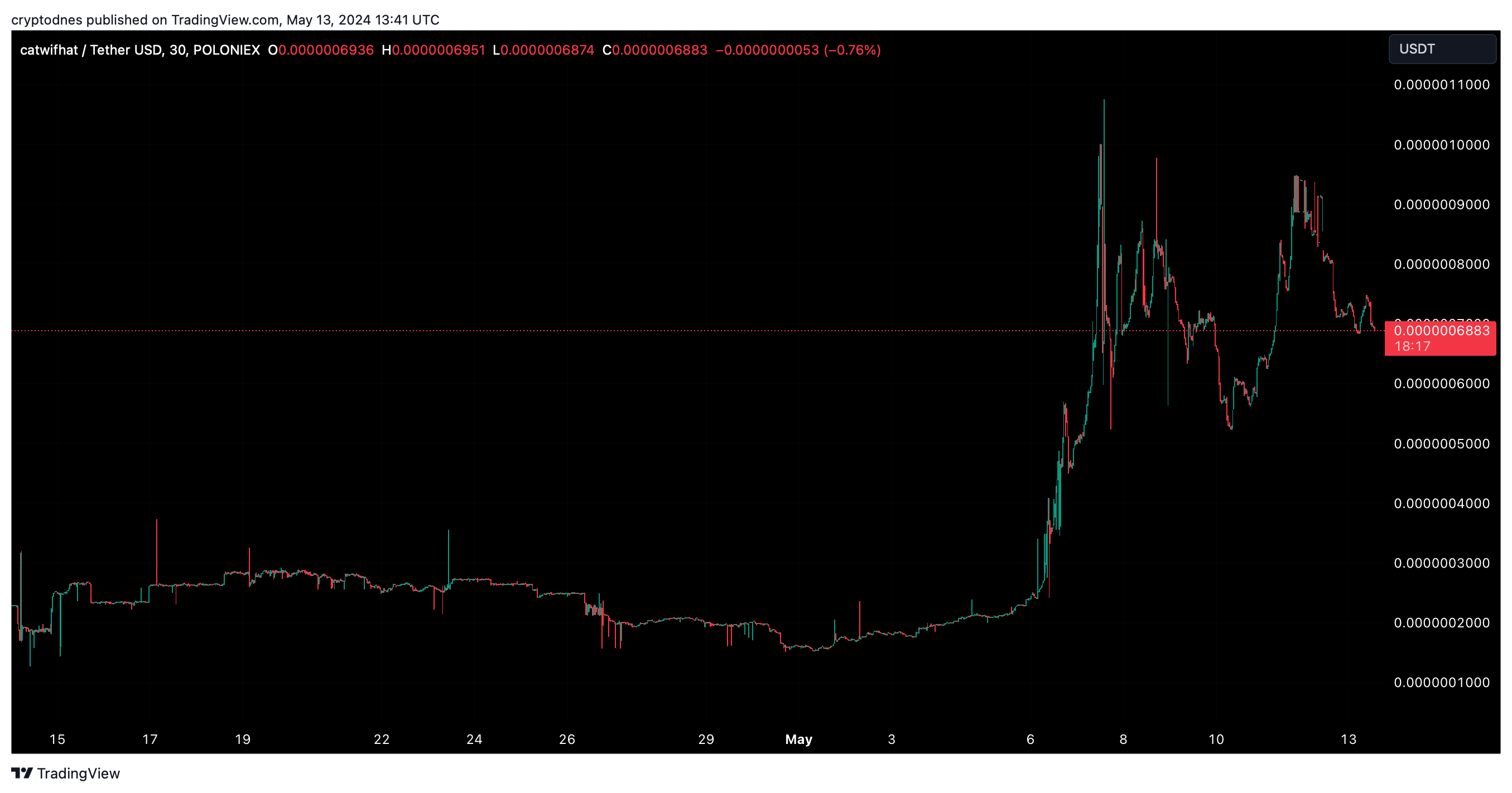 По-ранният скок в цената на Catwifhat се дължи на регистрирането му на разнообразни платформи, в това число CoinMarketCap, което усили известността му измежду вложителите и построи общественост към него.