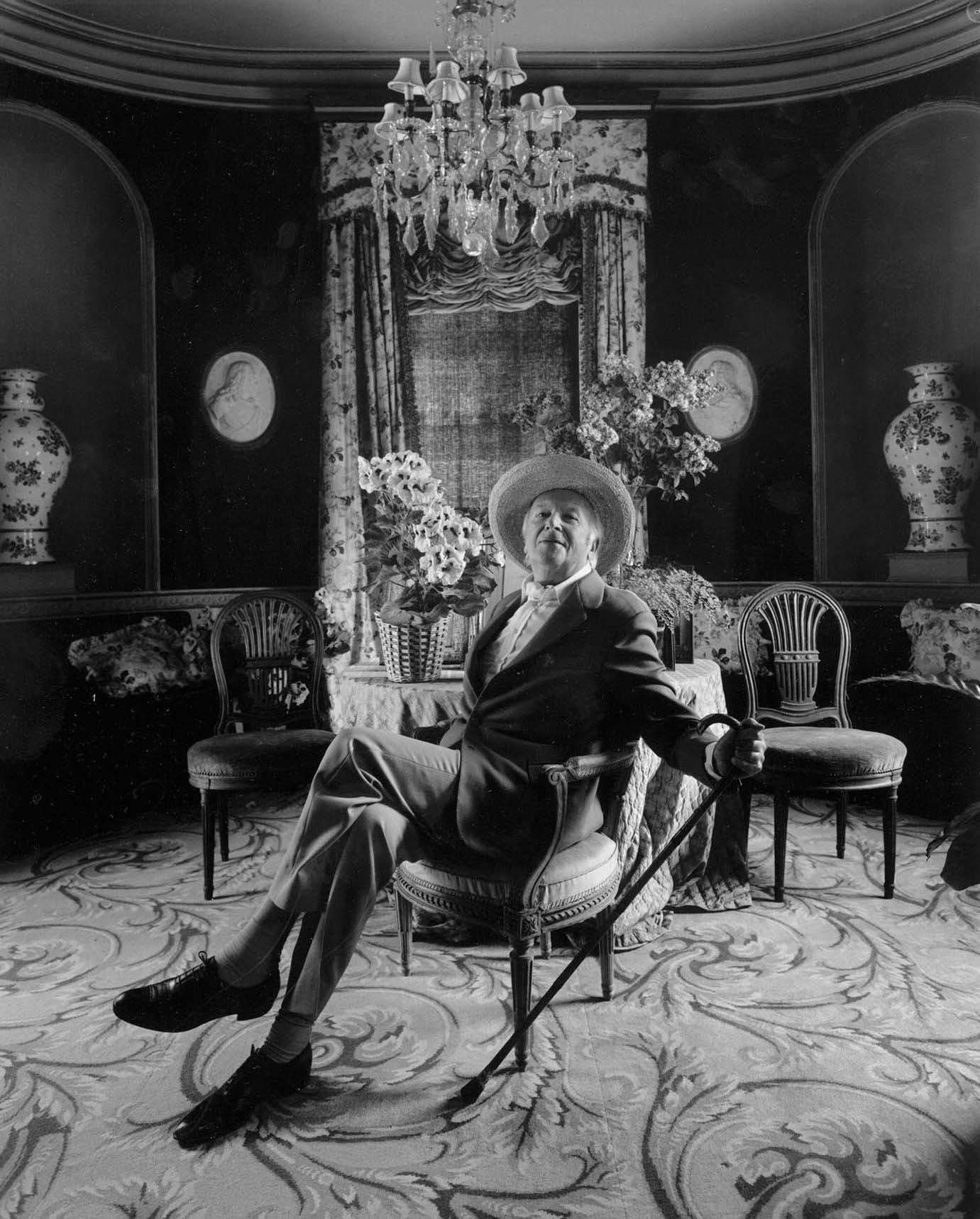 Cecil Beaton In the drawing room at Reddish House, Wiltshire, May 1978. © Arnold Newman