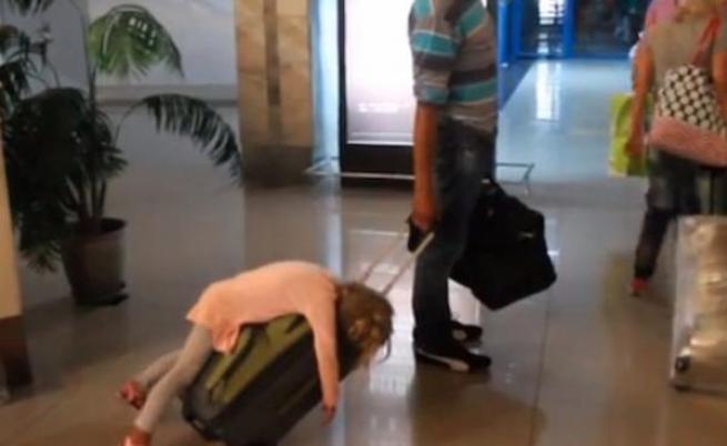 Децата най-често се предават на умората и могат да заспят безусловно на всички места, даже и върху куфара на родителите си.
