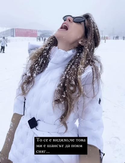 Чаровната синоптичка на NOVA Никол Станкулова показа стори в персоналния си профил в Инстаграм и написа шеговито: „ То се е видяло, че това ми е шансът да поям малко сняг... “.