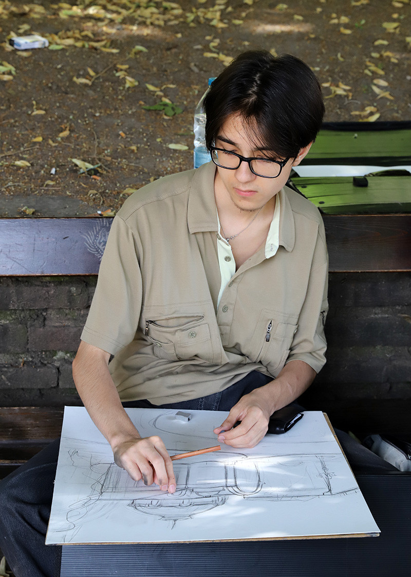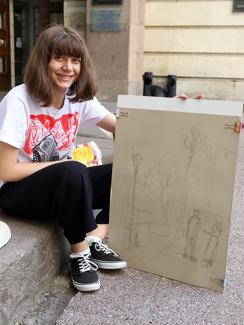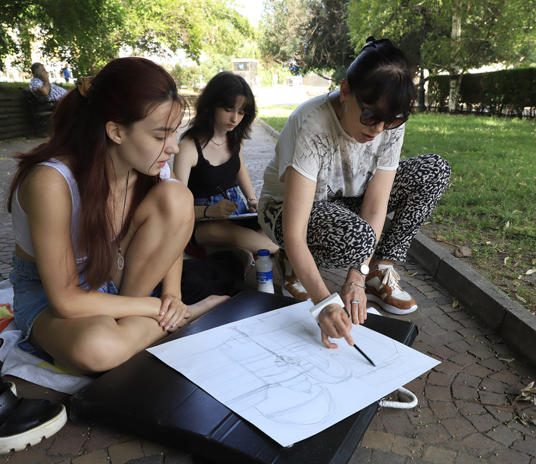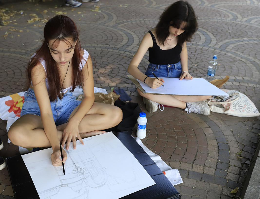 Част от 10 Г клас на НГПИ " Свети Лука " рисува София. Младежите са на образователната си процедура под управлението на преподавателя Деси Денева. В композиции с цвят и графични материали те се стремят да уловят пулса на града.