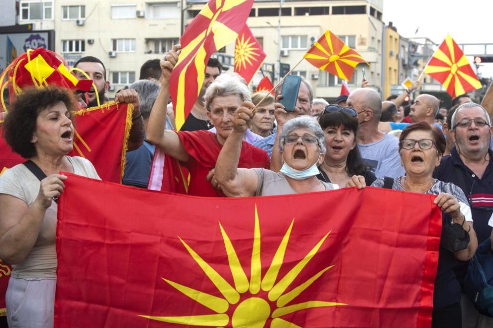 БГНЕС Според протестиращите отричането на правото на самоопределяне и обуславянето на европейската интеграция на Република Северна Македония с приемане на едностранно изтриване на културно-историческите особености и едностранно непризнаване на езика не е част от критериите за участие в Европейски Съюз, нито предписание сред страните-членки.