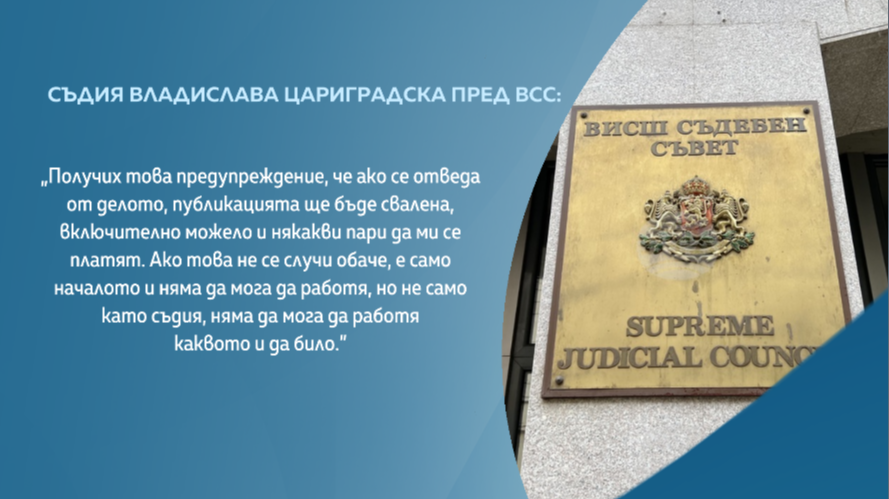Съдия Цариградска споделя по какъв начин е била стартирана медийна акция против нея в няколко уеб страницата. Последвали и предизвестия през родственици и закани по отношение на съответно дело.