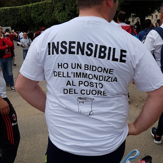 Част от тифозите на Милан ще носят специфични фланелки в днешния край за Купата на Италия с Ювентус. Двата има се изправят един против различен на “Олимпико” довечера, от 22:00ч., в борба за скъпия трофей. Привържениците на “росонерите” дойдоха на стадиона близо четири часа по-рано в очакване на своите любимци. Някои от последователите на Милан са подготвили специфични фланелки, иронизиращи именития пазач на Ювентус Джанлуиджи Буфон.