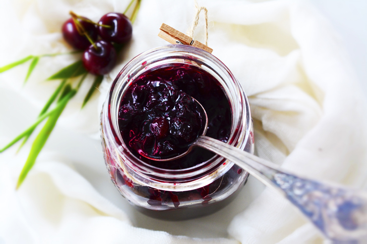 Използвах 2 с. лъжици зехтин, 1 лук, 550 г череши, 100 г оцет, 170-200 г захар, 2 шепи стафиди, 1/2 ч. лъжичка канела, индийско орехче, свеж джинджифил, карамфил, сол, чили и розов пипер, на усет. Как го направих: Загрях зехтина в тенджера и прибавих лук. Сготвих го, до момента в който стана транспарантен. Добавих останалите съставки, разбърках добре и оставих на слаб огън за към 40 минути или до момента в който се изпари част от водата и се сгъстят соковете.След като текстурата стана като тази на конфитюр, изключих топлината и оставих да се охлади. Захарта и оцетът са естествени консерванти, тъй че насипах чътни в буркан, без да го запечатвам.