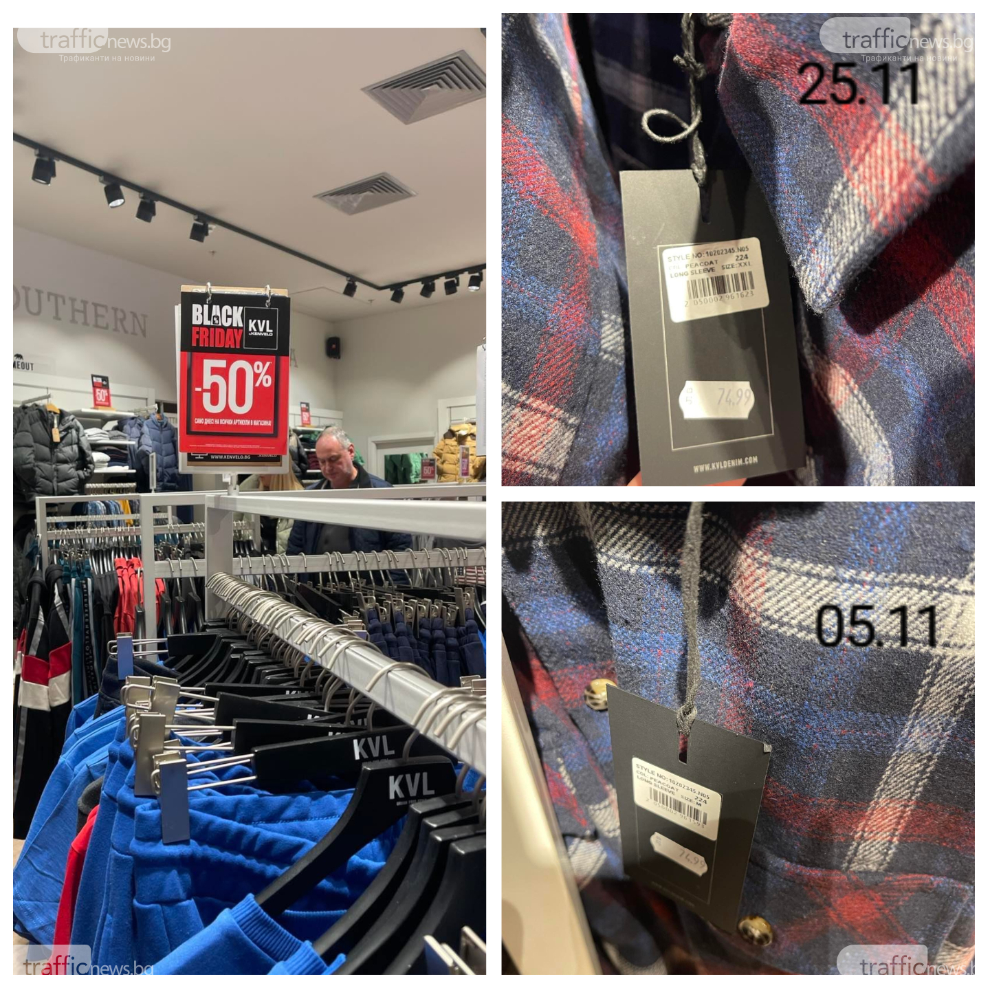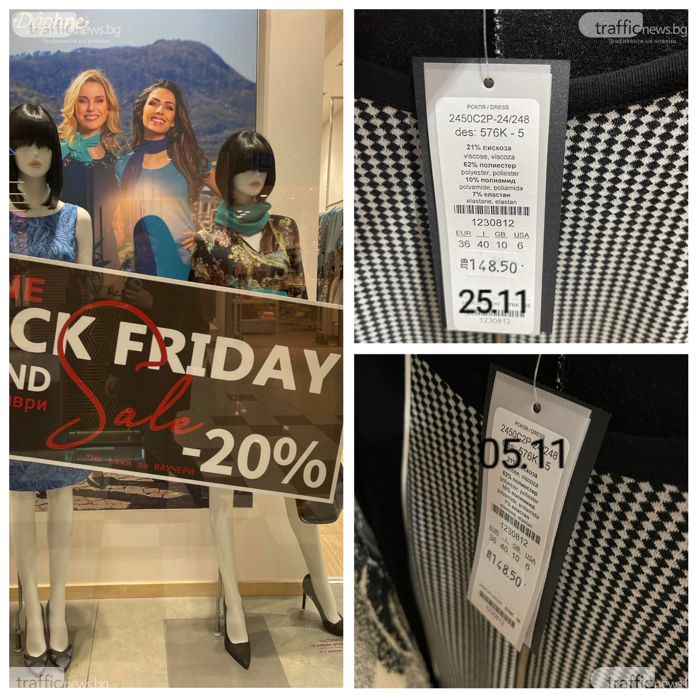Днес в пловдивските магазини имаше и инспекция от Комисията по отбрана на потребителите по отношение на нарушаванията и измамите на този ден. По техни данни, подправено надуване на цените няма, такива сигнали от купувачите също липсват към този миг. Глобата при нарушаване на правата за понижение е до 5 000 лева При илюзия на консуматори, погрешна цена и нелоялна комерсиална процедура глобите доближават до 50 000 лева, разясняват те.