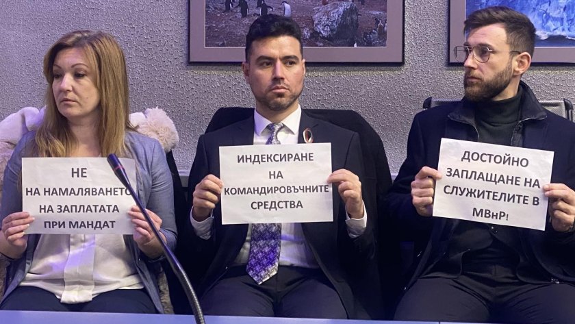 В залата за конференции влязоха и протестиращи за по-добро възнаграждение чиновници на външното ни министерство.