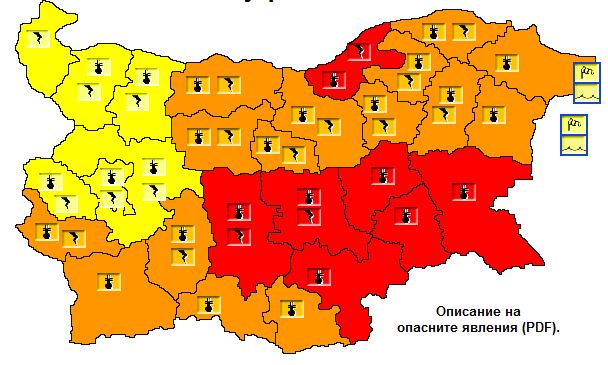 В 15 области е разгласен оранжев код, в 6 - жълт код за рискови феномени.