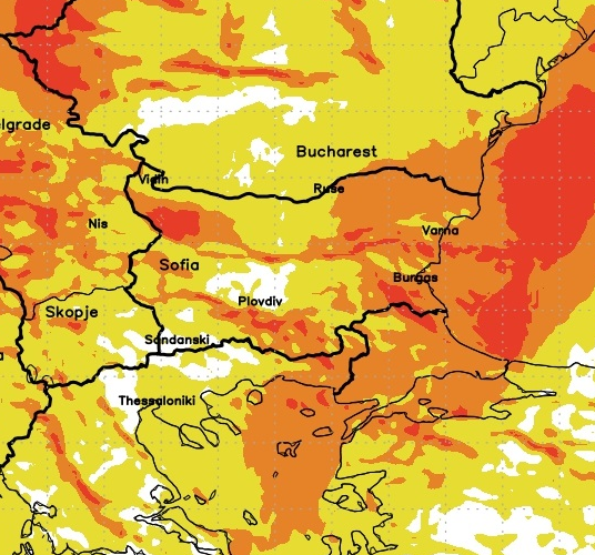 Облачността ще бъде по-често забележителна и на обособени места, основно от южната страна на планините, ще превали дъжд. Остава топло, изключително в Източна България и регионите, ситуирани покрай северните скатове на планините. Минималните температури ще са най-вече сред 7° и 12°, оптималните ще са най-вече сред 15° и 20°, в София минимална - към 5°, оптималната - към 15°.