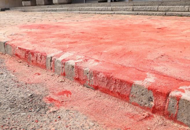 По-рано през днешния ден от гражданско придвижване БОЕЦ разгласиха пост с видео във Facebook, в който показват, че в навечерието на годишнината от войната на Русия против Украйна са направили тази акция, като знак на кръвта на починалите украинци.