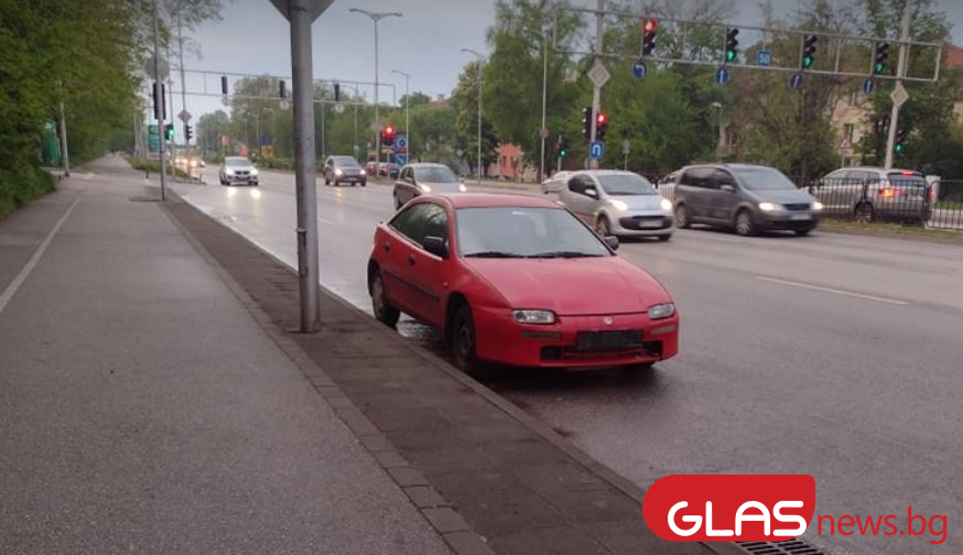 Червена кола без номера е изоставена на многолюден бул. в Пловдив. За това алармира четец на GlasNews.bg.
