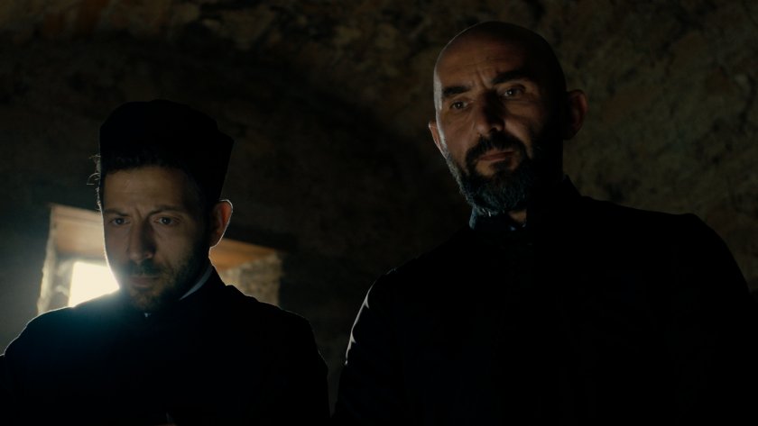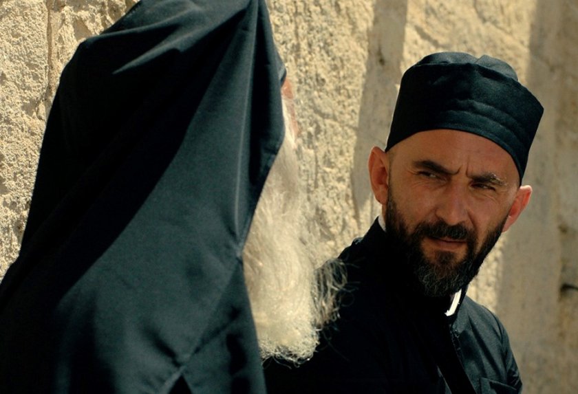 Като архимандрит Лазар в " С река на сърцето " в компанията на Леарт Докле, който играе отец Нектарий